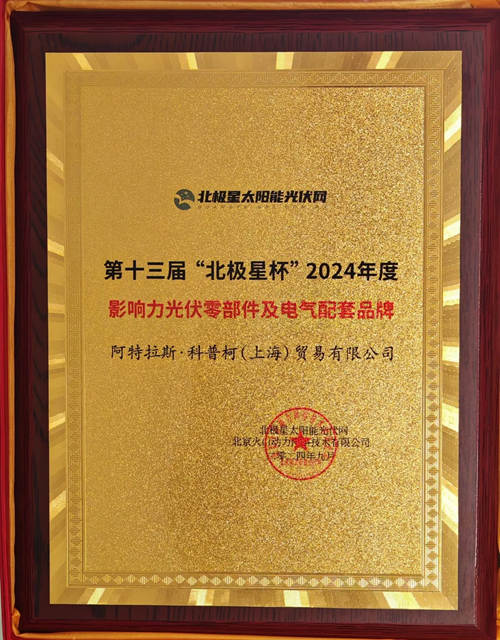 喜报!阿特拉斯·科普柯荣获“北极星杯”2024年度“影响力光伏零部件及电气配套品牌奖”!