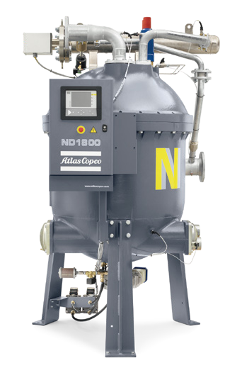 阿特拉斯·科普柯ND系列压缩热转鼓吸附式干燥机采用革命性转鼓设计,利用空压机余热实现吸附剂再生,彻底消除传统双塔干燥机15%的再生气耗,实现真正的零气耗运行。该系列涵盖ND300至ND4000共8大机型,处理流量最高可达4000 l/s(14400 m³/h),输出压力露点稳定在-40°C,满足电子、医药、食品等超低露点要求的高端行业。